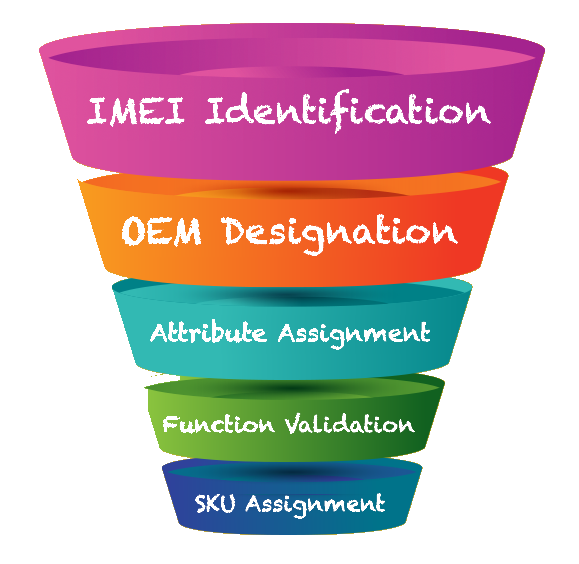 Our C.O.R.E engine took several years to develop and currently utilizes over 100 API connection integrations with major manufacturers to systematically identify a device by its IMEI. Most ERP systems are designed to move product out but are very inefficient at moving used product back in. Our C.O.R.E system reverses that funnel allowing us to dump thousands of IMEI's that are inbound to our facility into the engine. Before any product arrives we will know almost every characteristic of that device and prepare for further testing, data disposition, sku assignment all working toward product final prep and sale. With the steep aging curve associated with electronics, every week saves approximately 1% in depreciation.